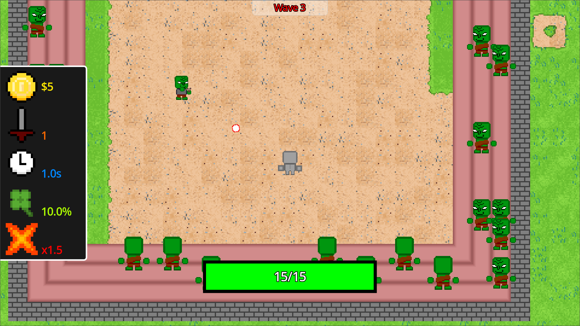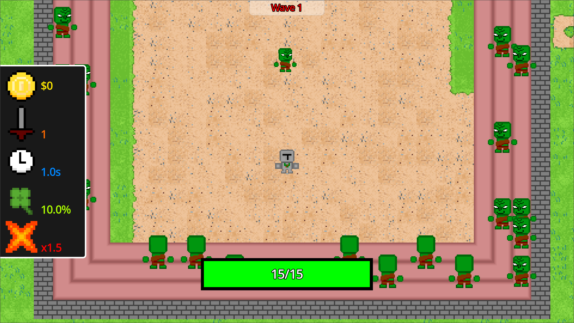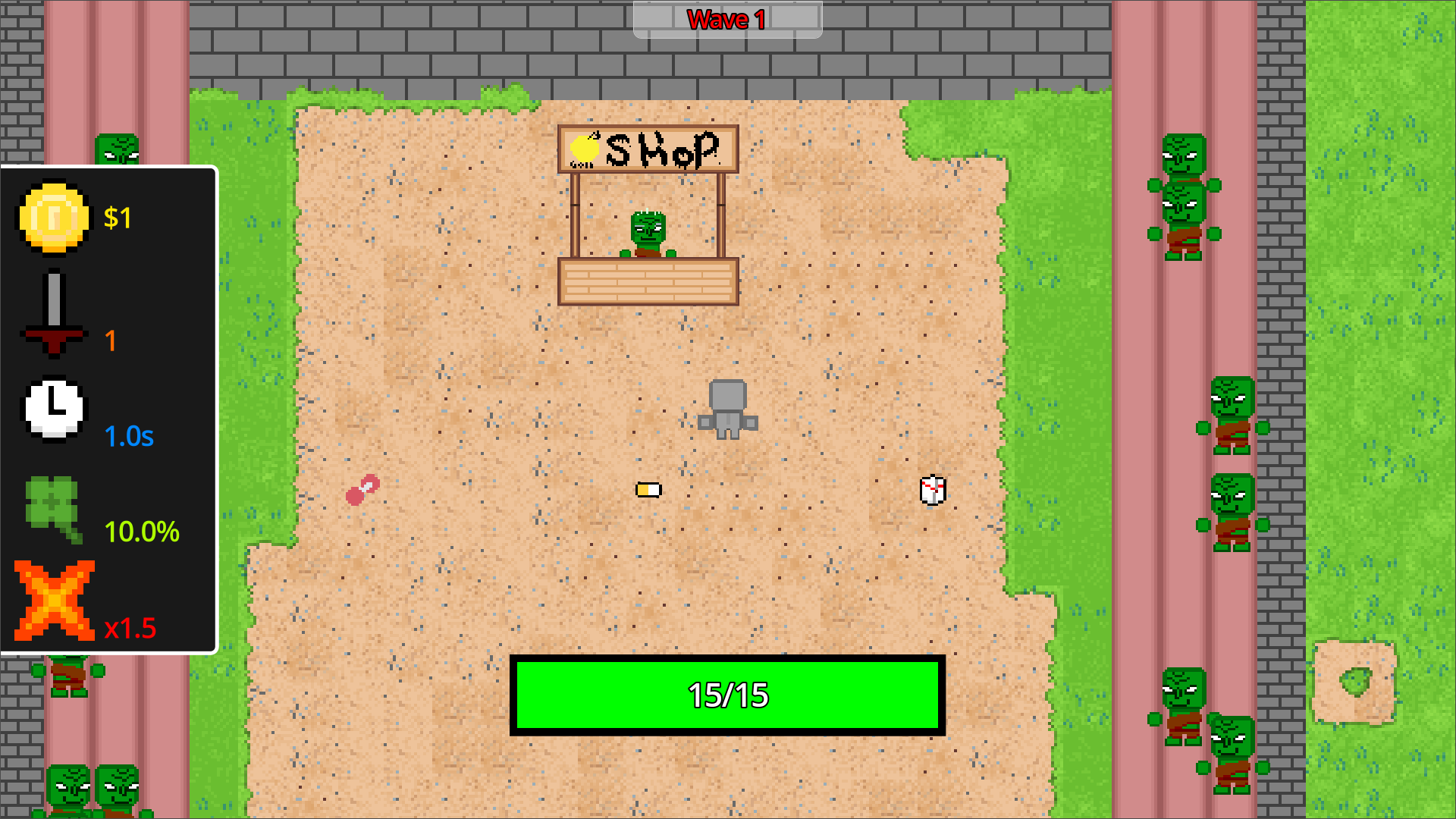 Kill as many goblins as you can and use their gold to buy upgrades from the shopkeeper until you become unstoppable!!!